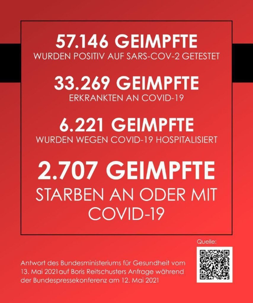 2.707 Menschen nach Impfung an Covid-19 gestorbenvon Angelika18. Mai 202118. Mai 2021 Zahlen des Bundesgesundheitsministeriums nach den wiederholten Fragen von Boris Reitschuster Zu reitschuster.de