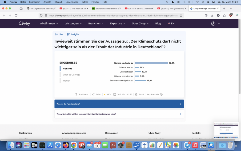 63% sind nicht gehirn­gewaschen und finden den Erhalt der Deutschen Industrie wichtiger