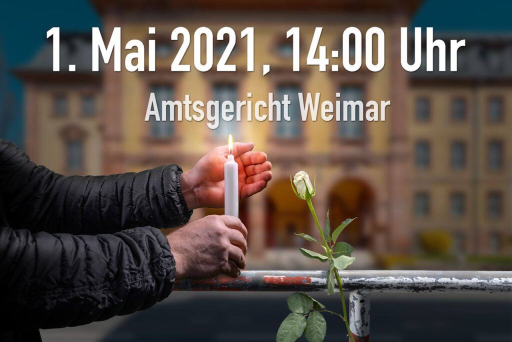 Die Rechtsanwältin Beate Bahner und die Rechtsanwälte Ralf Ludwig und Markus Haintz werden zum Gedenken an den Rechtsstaat und aus Protest gegen Übergriffe auf die Unabhängigkeit der Justiz am 1. Mai 2021 um 14 Uhr vor dem Amtsgericht Weimar je eine weiße Rose und eine Kerze niederlegen.