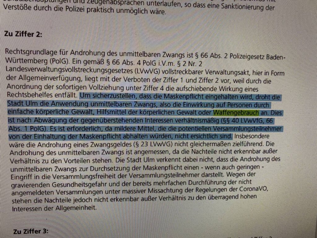 Auch die Stadt Ulm möchte die Masken­pflicht mit Waffen­gewalt durchsetzen
