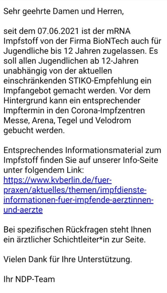 Aufforderung, die Empfehlung der STIKO zu ignorieren