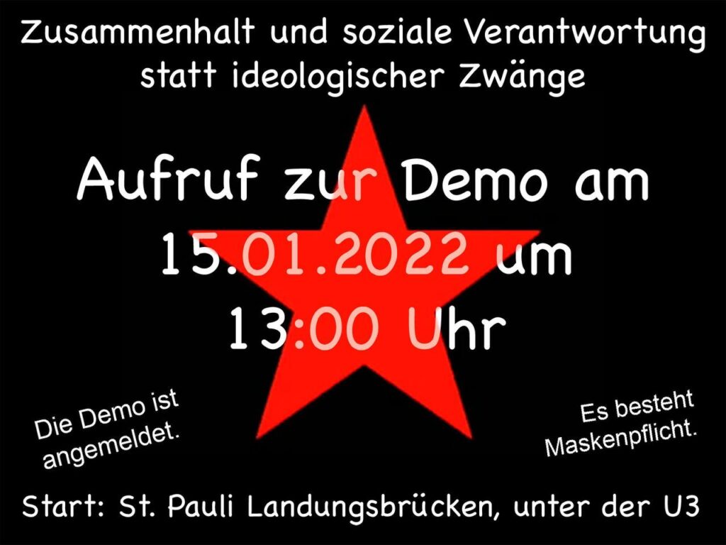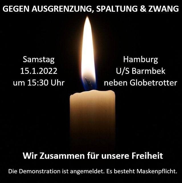 Demo am 15.1.22 um 15:30 in Hamburg an der U/S Barmbek neben Globetrottervon Rosa14. Januar 202214. Januar 2022 Es gibt ausser der Demo in HH Barmbek um 15. 30 Uhr am Globetrotter Geschäft oder an der Mundsburg um 16 Uhr am Theater noch eine Demo in St. Pauli um 13 Uhr unter der U3 – das heißt, die Polizei muss sich aufteilen…