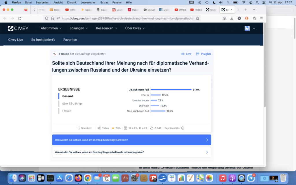 Über 63% der Befragten sind für diplomatische Verhandlungenvon Angelika12. April 202312. April 2023