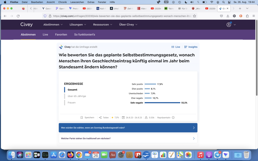 55,5% finden es sehr negativ, 10,7% eher negativ und knapp 8% sind unentschiedenvon Angelika26. August 202326. August 2023