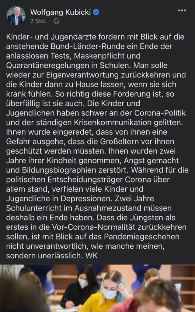 Kinder müssen in die Vor-Corona-Realität zurückkehren dürfenvon Rosa18. Februar 202218. Februar 2022 Warum, um Himmels willen, erst am 20. März?