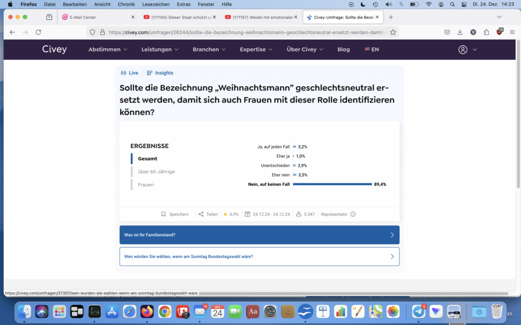Knapp 93% wollen keinen geschlechtsneutralen „Weihnachtsmann“von Angelika24. Dezember 202424. Dezember 2024