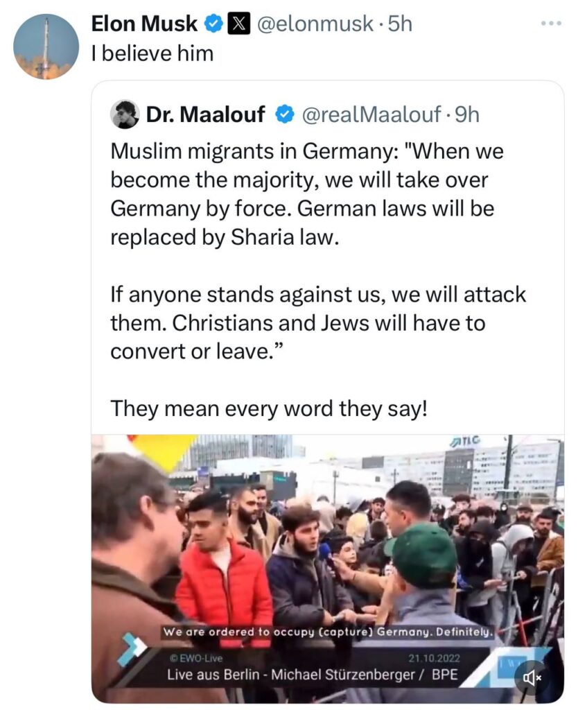 Dr. Maalouf schreibt: „Sie meinen jedes Wort, das sie sagen!“ Und Elon Musk twittert: „Ich glaube ihm.“